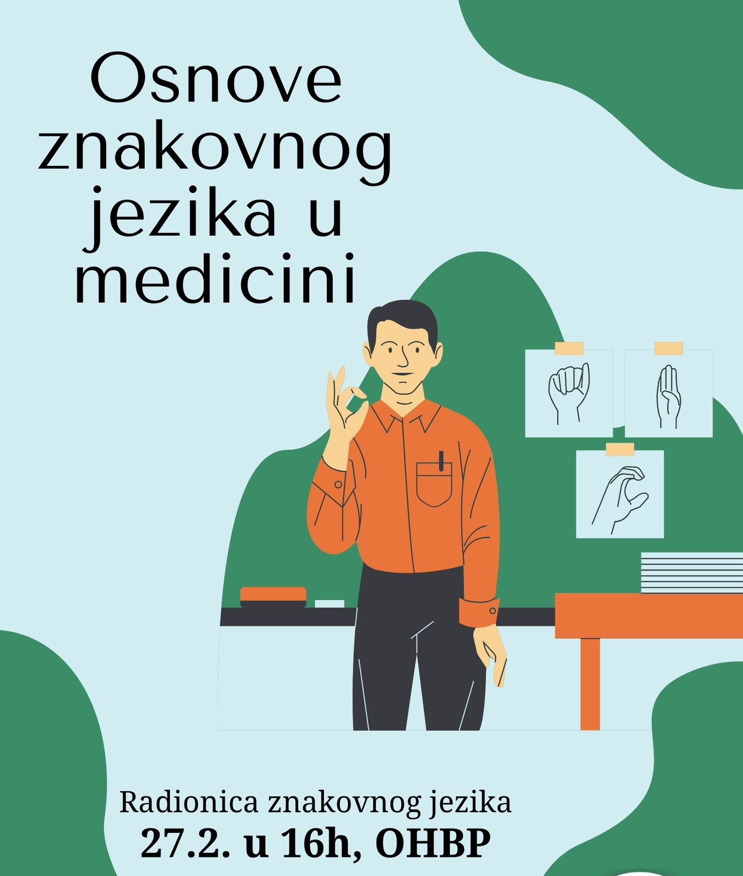 Znakovni jezik ima sve važniju ulogu u medicini jer omogućuje kvalitetnu i ravnopravnu komunikaciju između zdravstvenih djelatnika i gluhih ili nagluhih pacijenata. Poznavanje osnovnih elemenata znakovnog jezika doprinosi većem razumijevanju, povjerenju i uspješnosti liječenja, što je temelj empatičnog i inkluzivnog pristupa skrbi o pacijentu. Stoga, pozivamo vas da sudjelujete na radionici „Osnove znakovnog jezika u medicini“, koju organizira Studentska sekcija FizIOS u suorganizaciji Alumni kluba MEFOS i Studentske sekcije za znanost KIFOS. Samu radionicu predvodit će Luka Oliš, prevoditelj znakovnog jezika i tajnik Osječkog sportskog saveza gluhih. Radionica će se održati 27. veljače u 16:00 sati u predavaonici u podrumu OHBP-a.